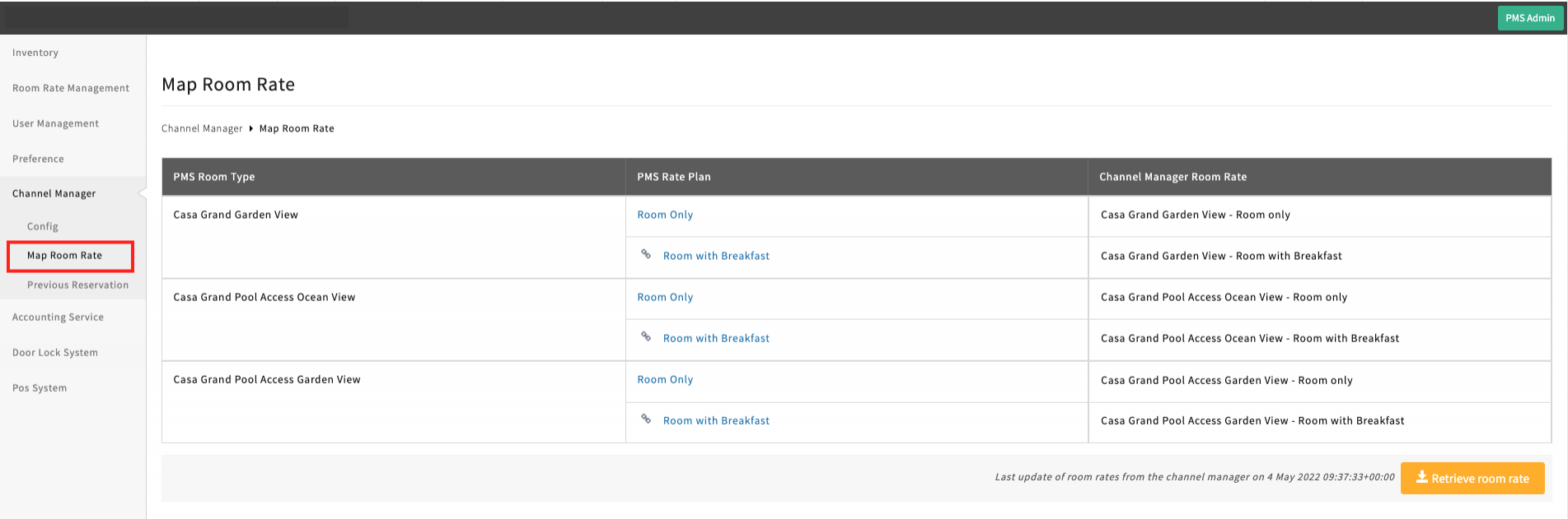 - Update Room Rate: The system will automatically update the price from PMS to the channel manager (PMS set the price, the channel manager will have the same price as PMS).