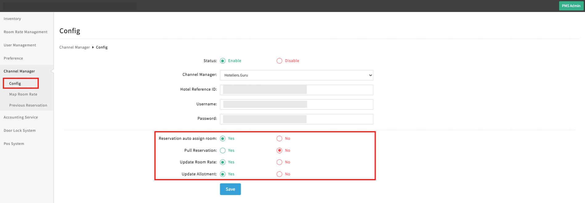- Note: If any topic is selected No, it means that the PMS system will not send information to the channel manager.