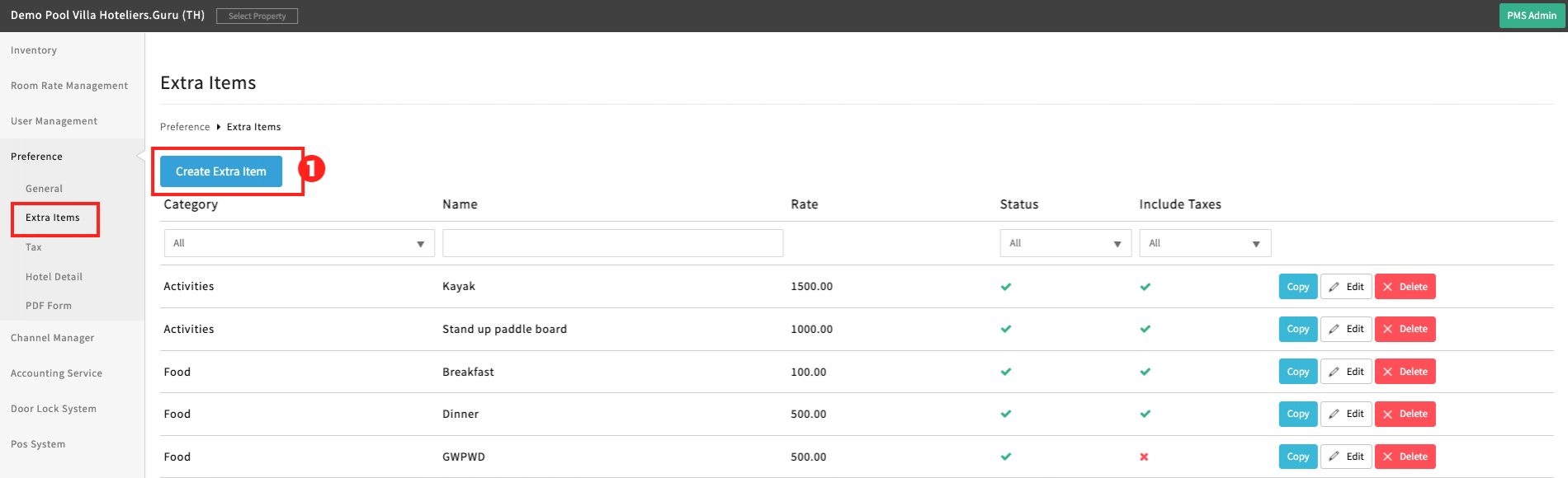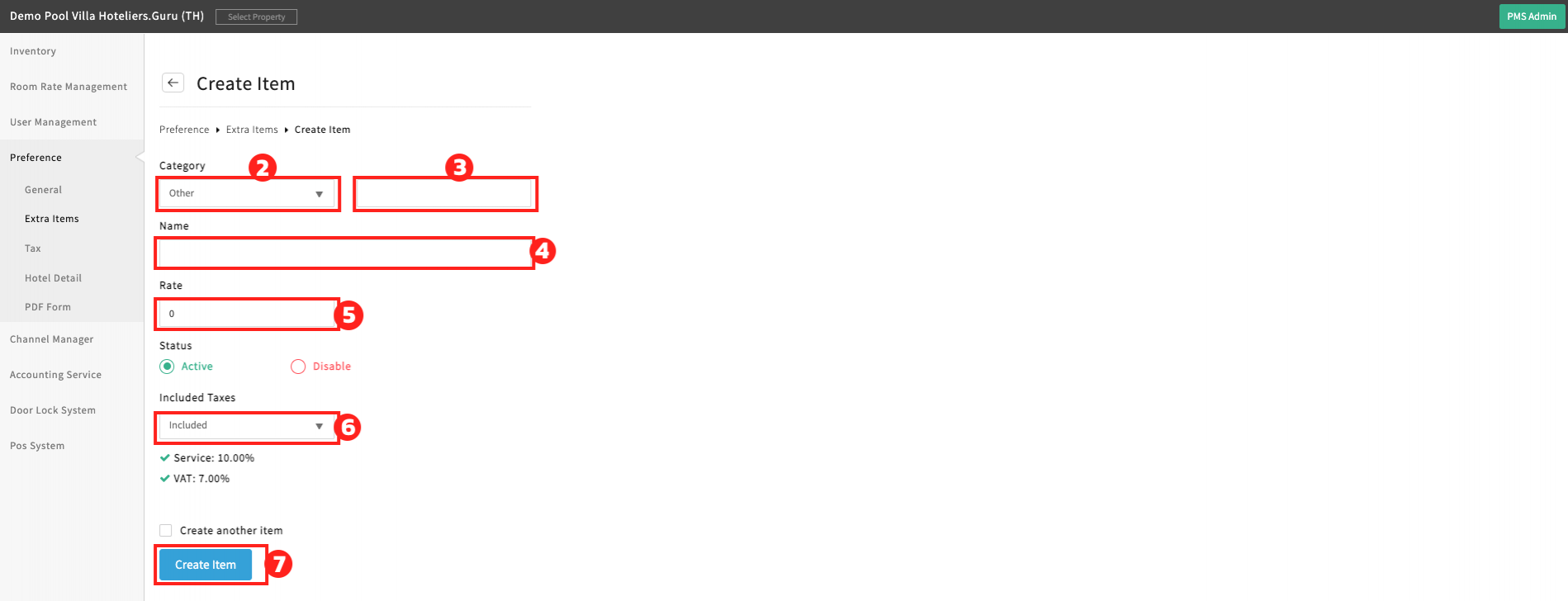 4. Name -> Type extra item name such as Breakfast, Minibar, Airport transfer etc.