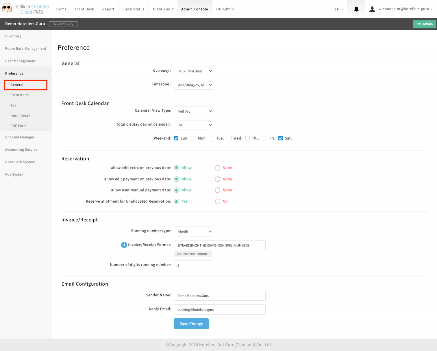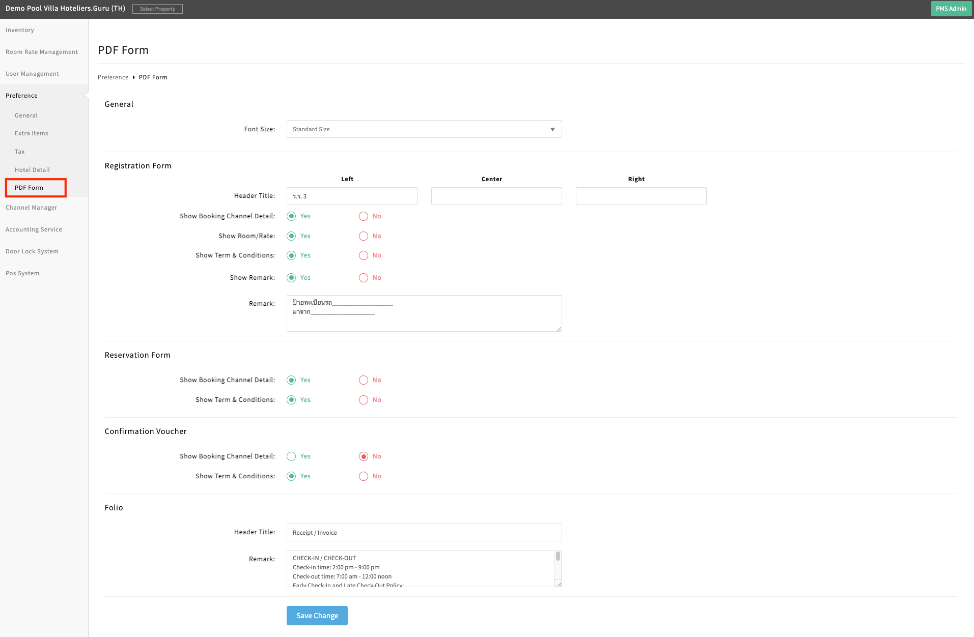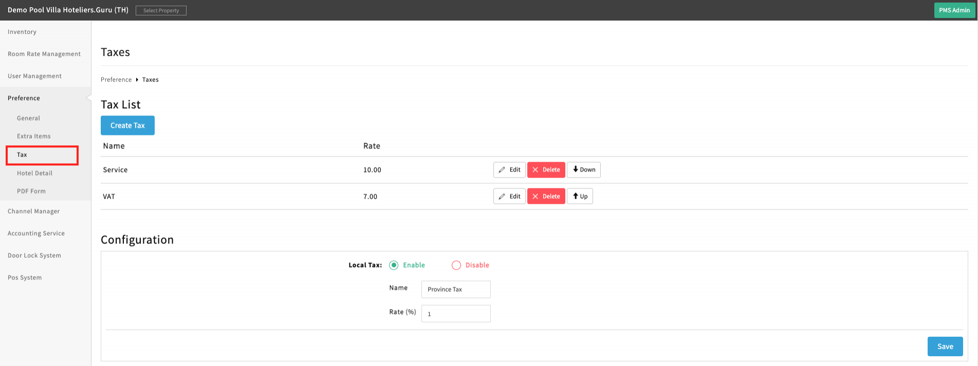 Tax such as Vat , Service charge (affects the calculation in each booking's folio)