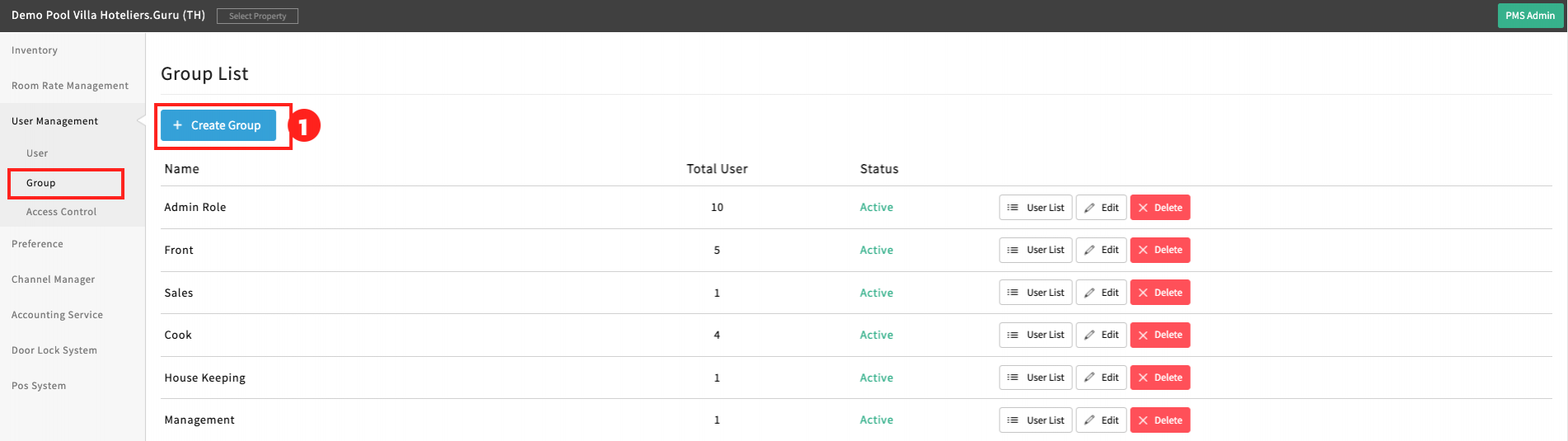 Create a group to define which users are in this group, such as Reservation team , Front office , Accounting etc.