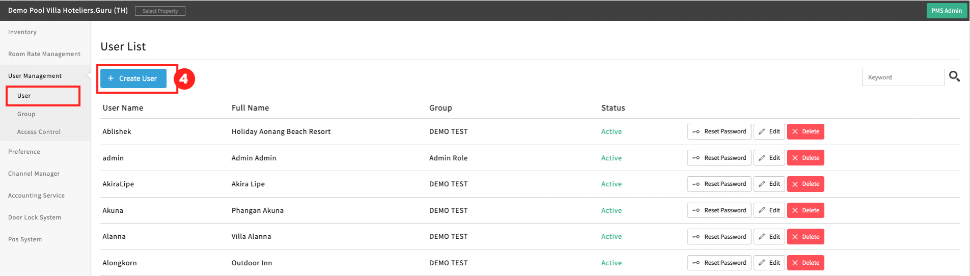 To specify which users belong to this group, create a group and name it something like "Reservation team," "Front office," "Accounting," etc.