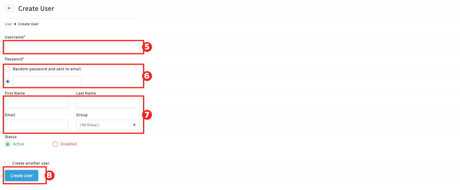 6. Password -> choose "Random password and sent to email" or second option and type password that would like to used.