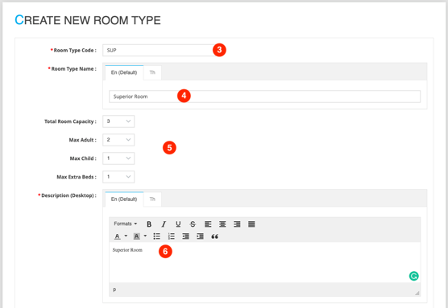 - Enter the room type name code or abbreviation, such as SUP or DLX.