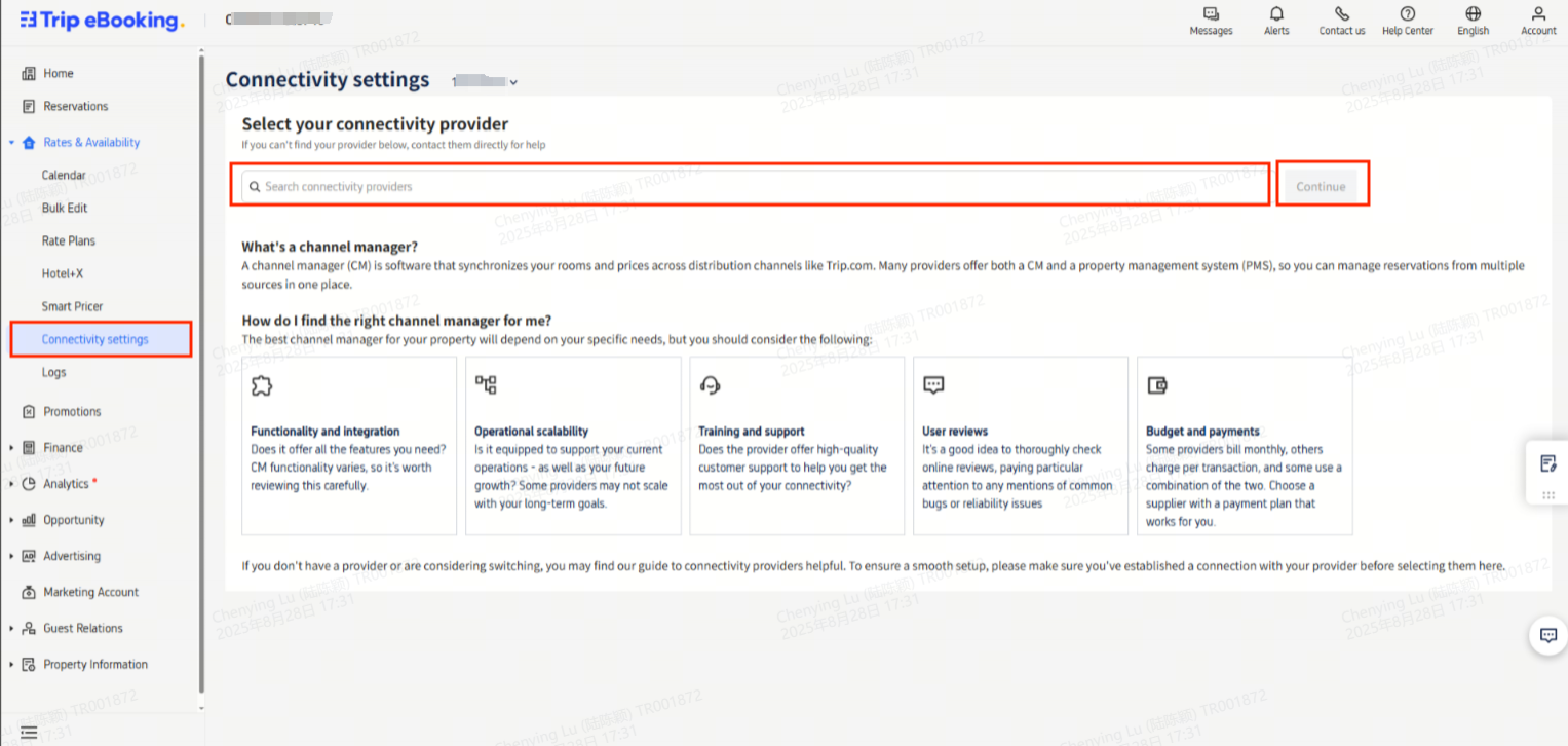 (Connectivity settings page on Trip.com will roll out globally starting on September, 1 2025 and will be available to all hotels within one month)