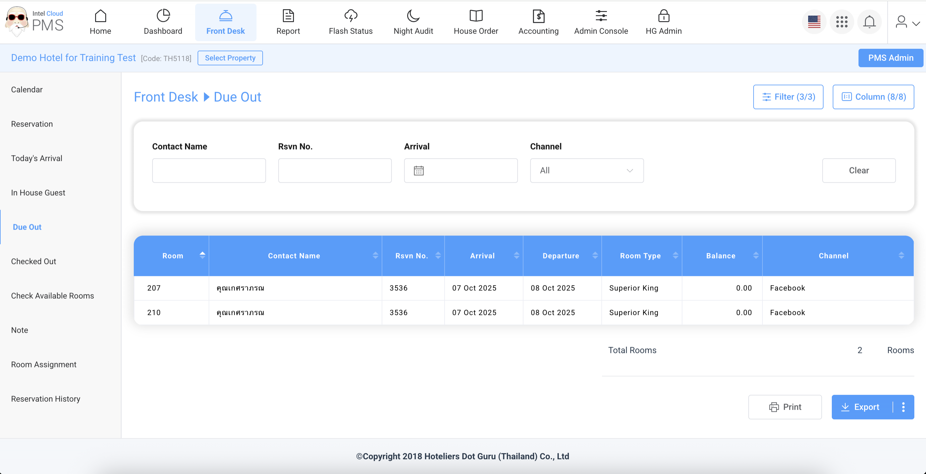Guests who are scheduled to check out today (departure date is today).