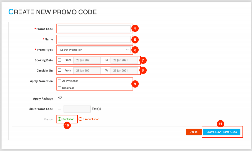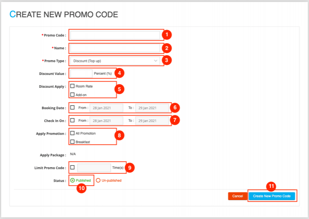 9. Limit Promo Code : Set limit time for this promotion can be reserved (if any)