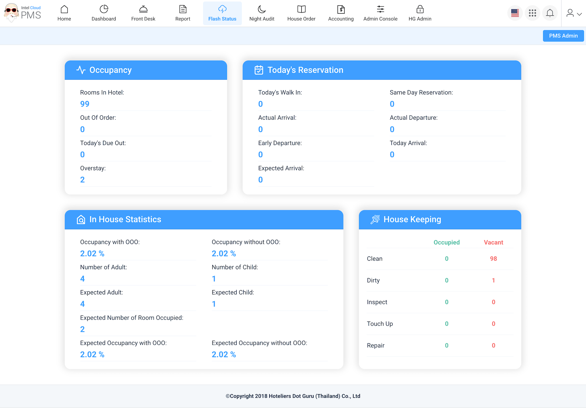 Flash Status provides a real-time snapshot of the hotel’s current operations.
