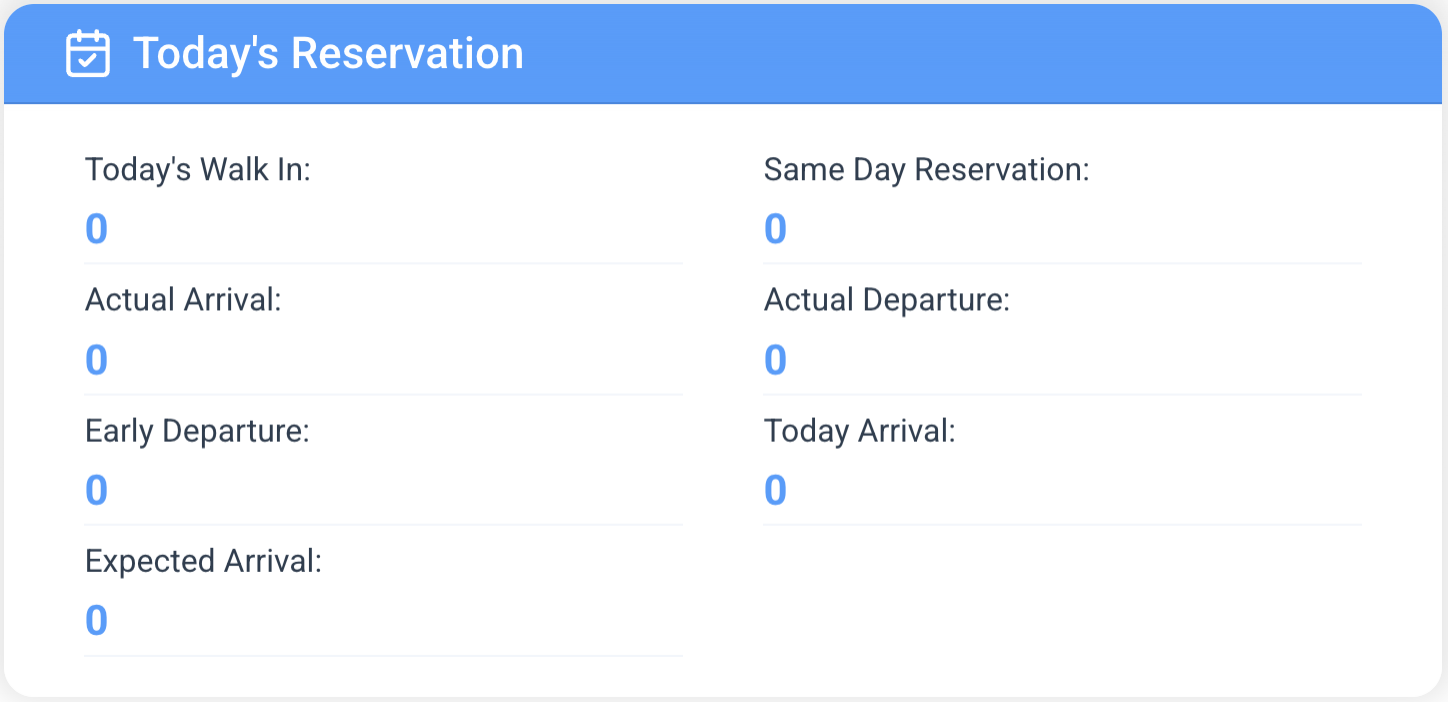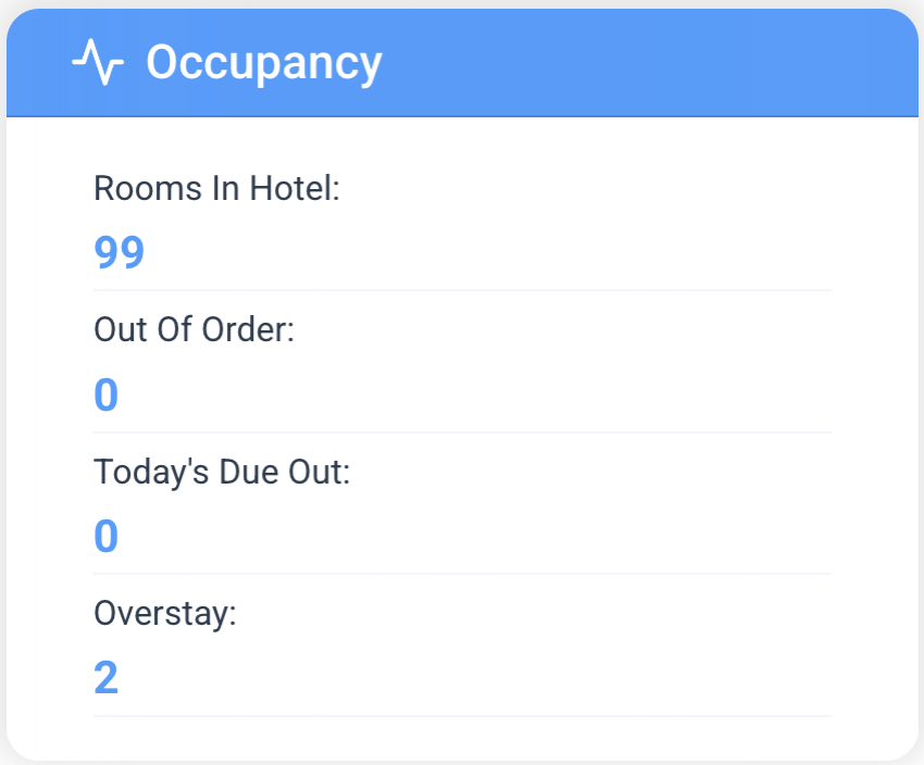 It summarizes key information such as occupancy, today’s arrivals and departures, guest statistics, and housekeeping status, allowing hotel staff to quickly monitor daily performance.