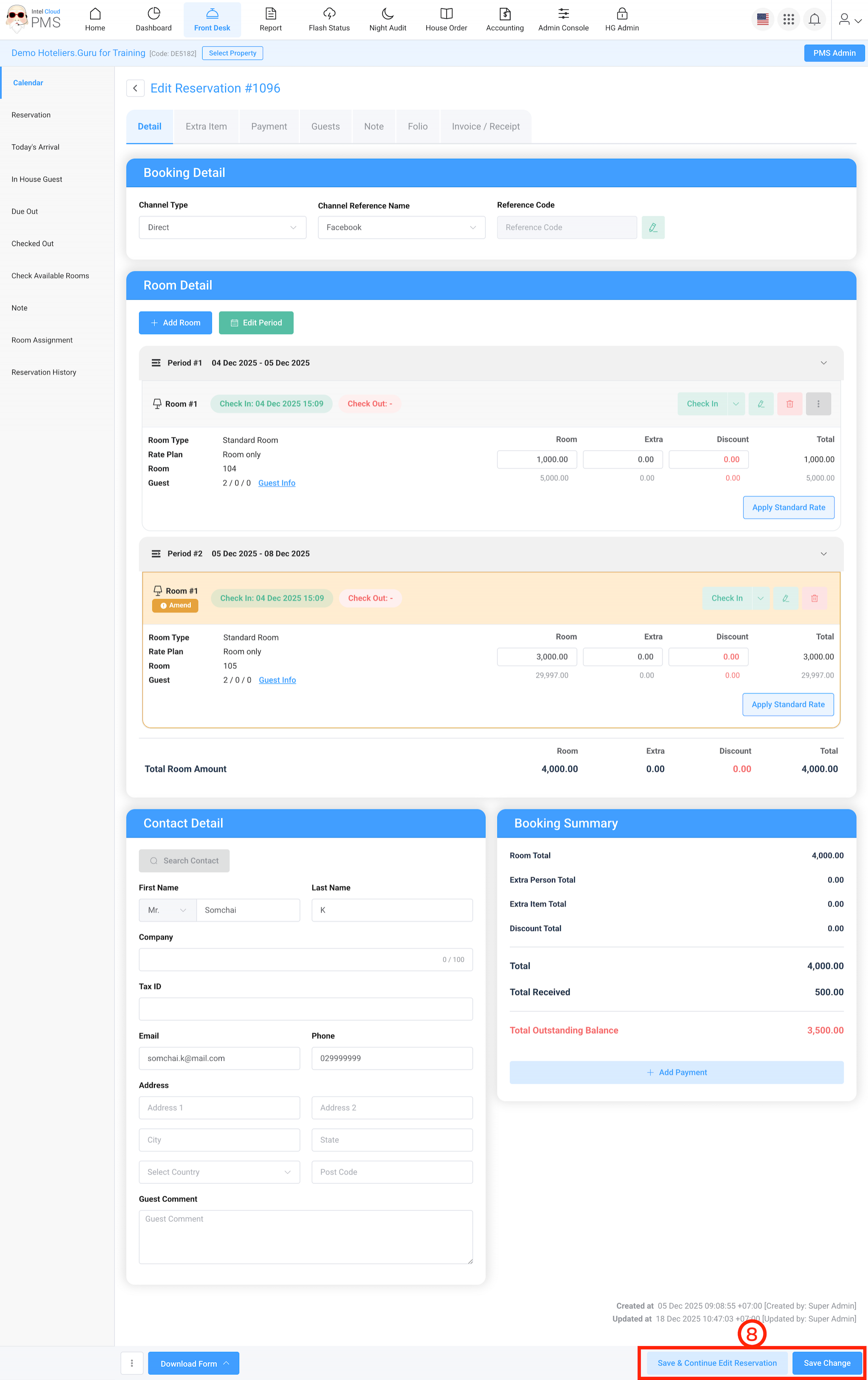 - Click Save & Continue Edit Reservation or Save Change button.