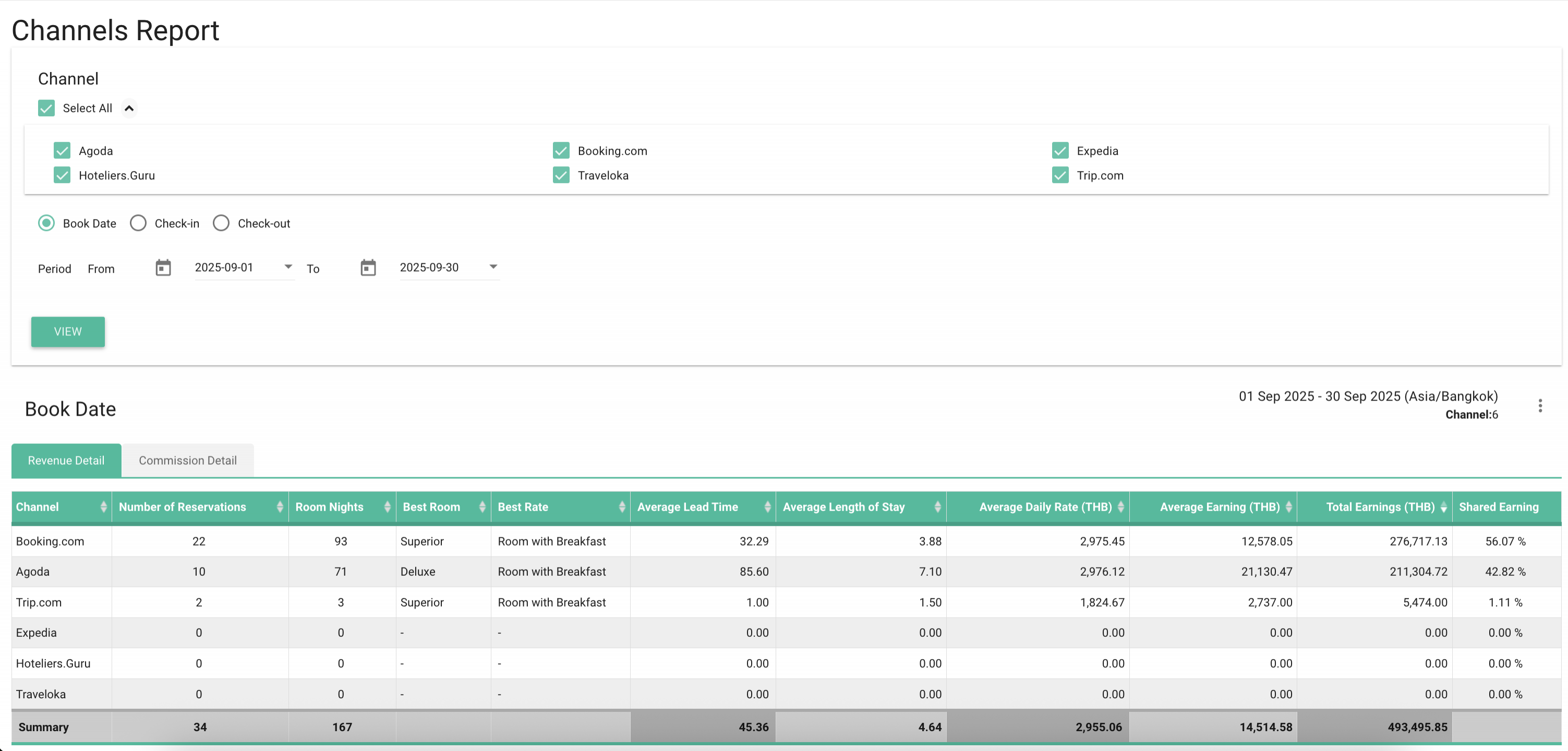 By default, the system displays data under Booked Date for the current month.